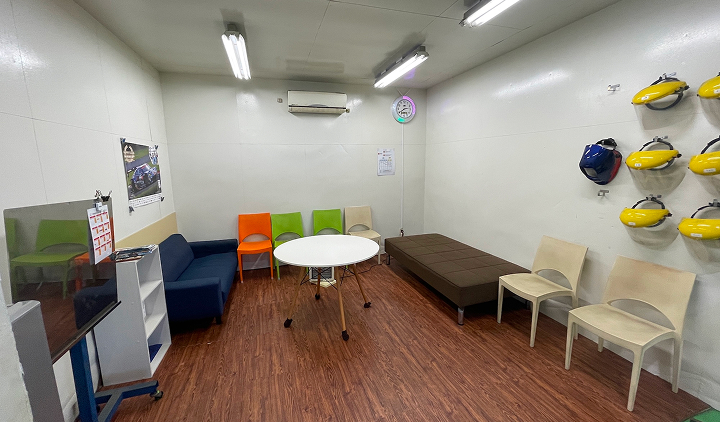 工場内に土足厳禁の休憩スペースも用意しています。休憩時間は自由に使えます。